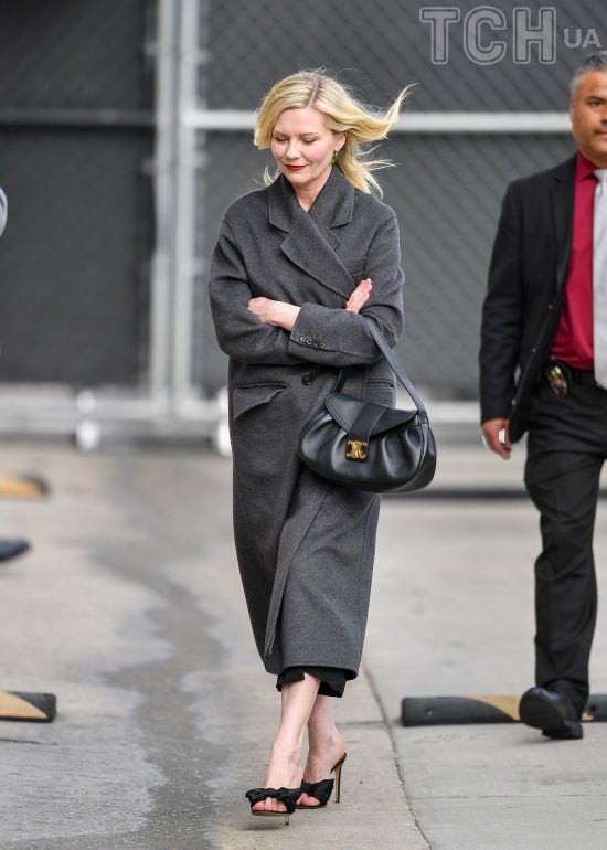 В пальто и мюлях с бантами: красивую Кирстен Данст заметили по пути на интервью