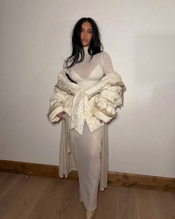 Кім Кардашян у прозорому вбранні і шубці з каракуля з’явилася на гірськолижному курорті