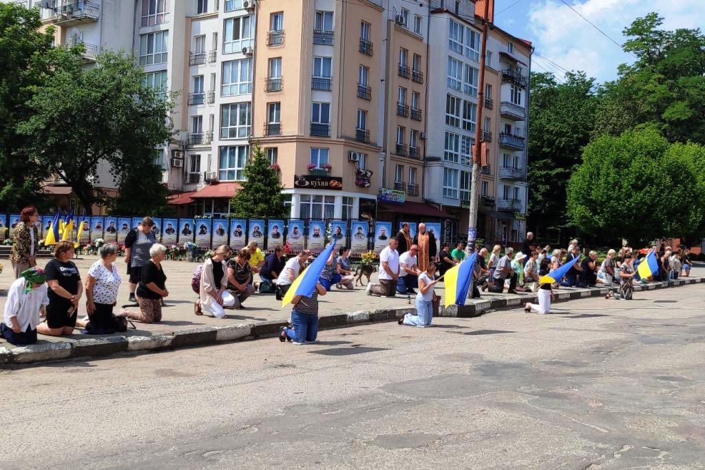 У Тлумачі на колінах зустріли кортеж із тілом військовослужбовця Тараса Ткачука