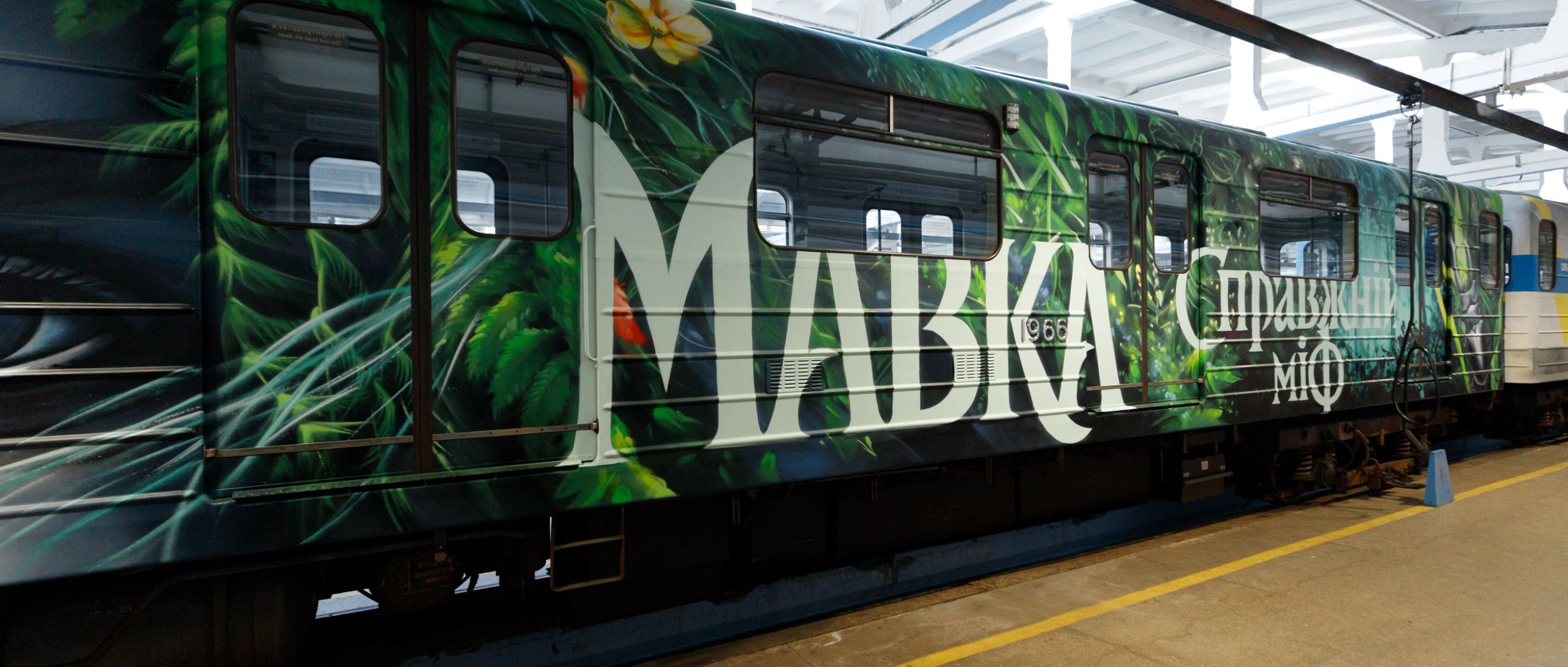 У київському метро запустили тематичний артвагон «Мавка. Справжній міф», присвячений українській міфології. Вагон уже курсує синьою гілкою столичного