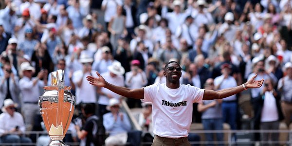 Зірковий вінгер Парі Сен-Жермен Усман Дембеле привіз виграний його командою кубок Ліги чемпіонів на тенісний корт імені Філіппа Шатріє в Парижі.