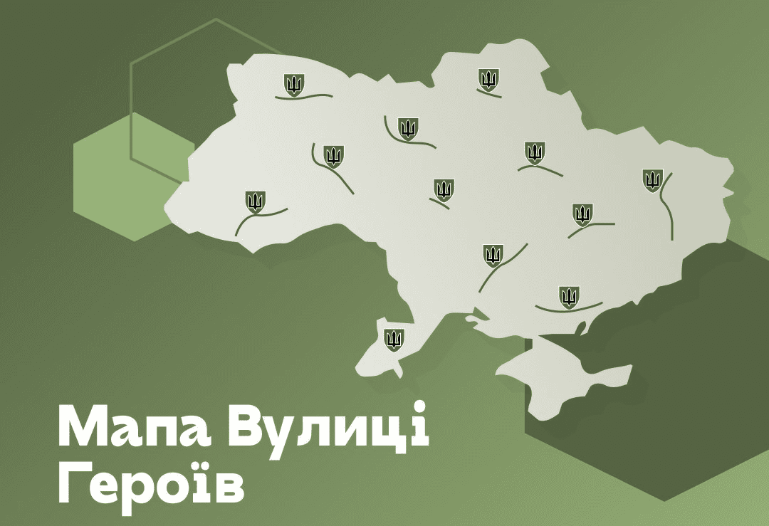 На мапі «Вулиці Героїв» зібрали вулиці, названі на честь загиблих захисників та захисниць. Карту створили платформи «Меморіал героїв» і «ЛУН Місто»