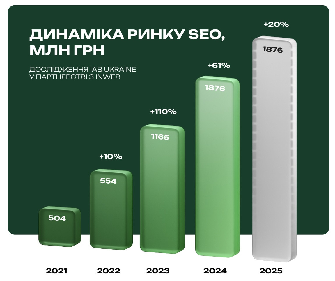 Українські компанії інвестували в SEO-послуги 1,9 млрд грн за 2024 рік, це на 61% більше, ніж у 2023. У 2025 році очікується подальше зростання на
