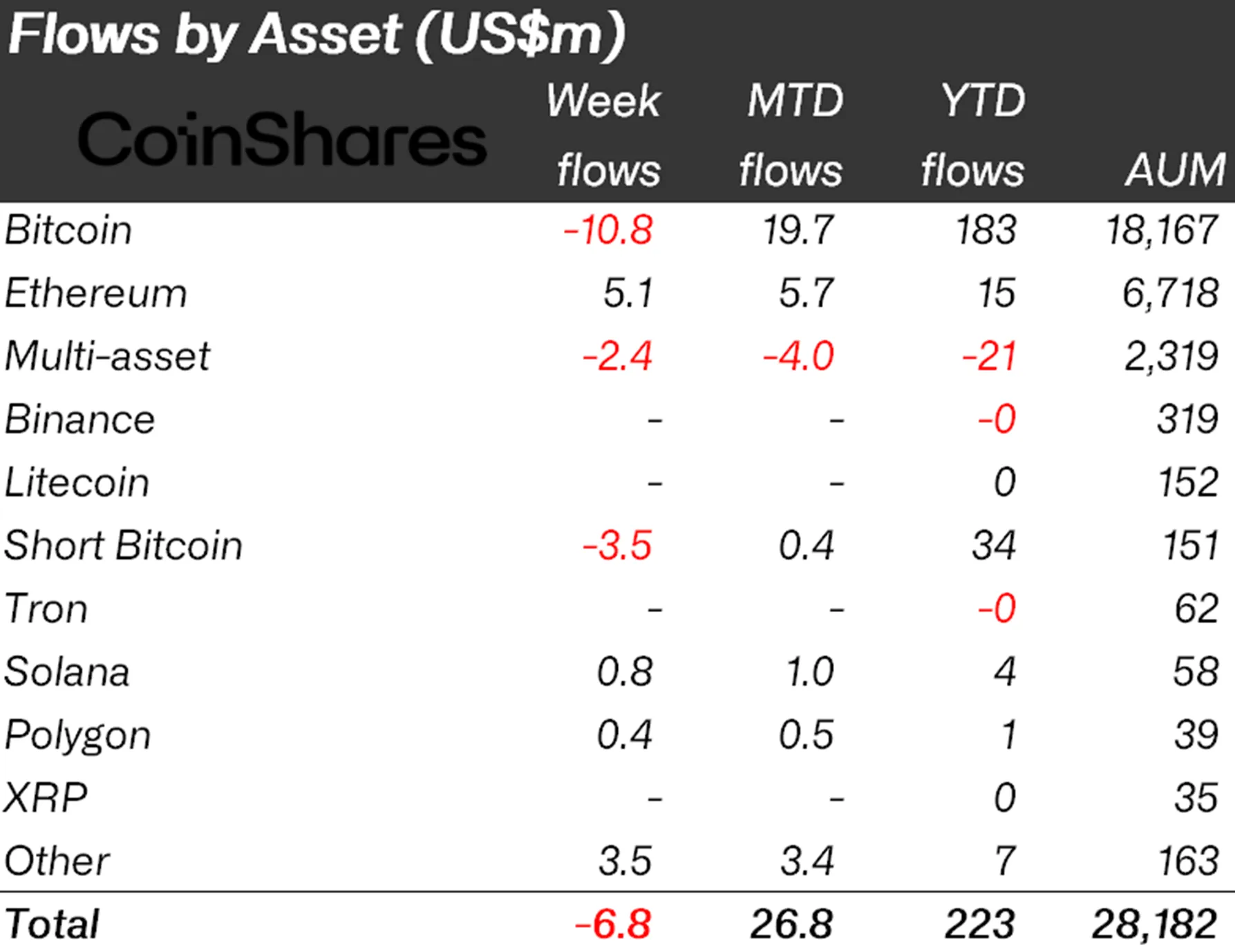 Криптофонды спустя четыре недели зафиксировали первый отток средств