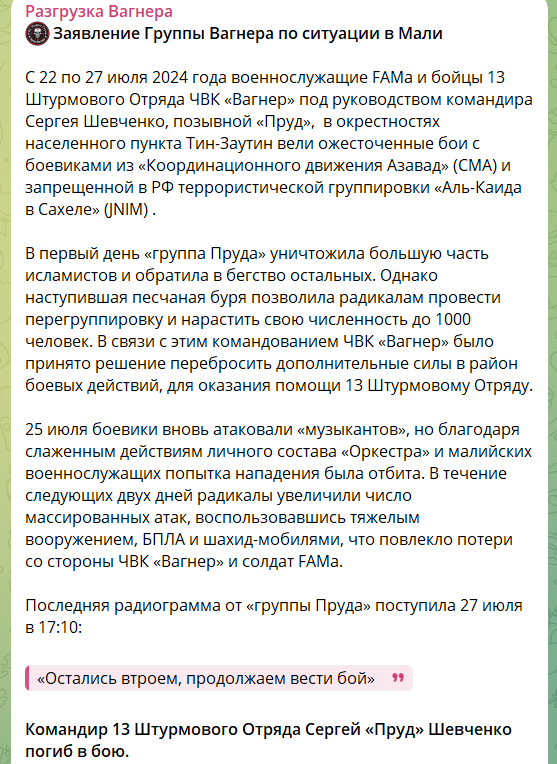 У ПВК Вагнер підтвердили ліквідацію своїх бойовиків у Малі: як найманці виправдовують провал