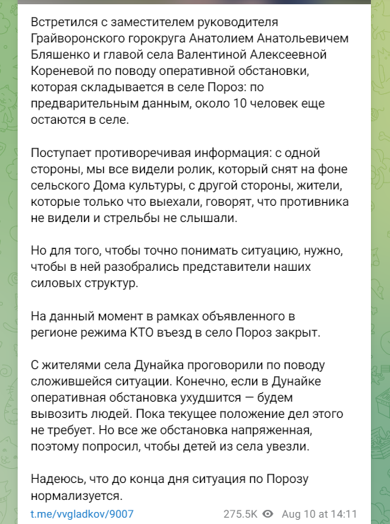 В деревне Пороз Белгородской области РФ группа военных с отличиями записала видео возле местного клуба. Расстояние от этого клуба до ближайшей точки