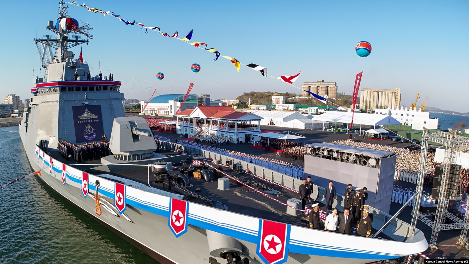 В Северной Корее новейший эсминец перевернулся при спуске на воду на глазах у Ким Чен Ына