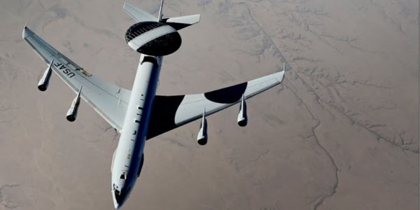 Літак NATO E-3A Sentry (він же AWACS), обладнаний обертовим радаром, зазвичай здійснює польоти на висоті 9 км і відстежує будь-яку активність у