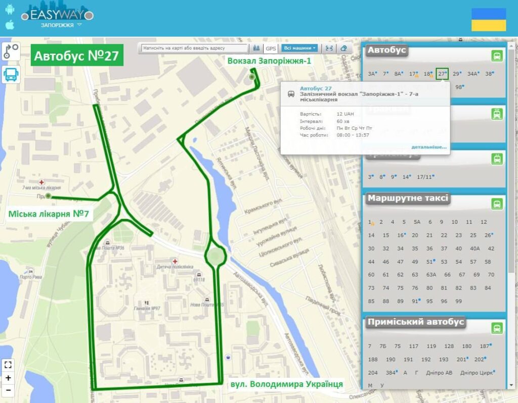 Новий автобусний маршрут у Запоріжжі: №27 "Вокзал Запоріжжя-1 – Міська лікарня №7". Управління з питань транспортного забезпечення та зв’язку
