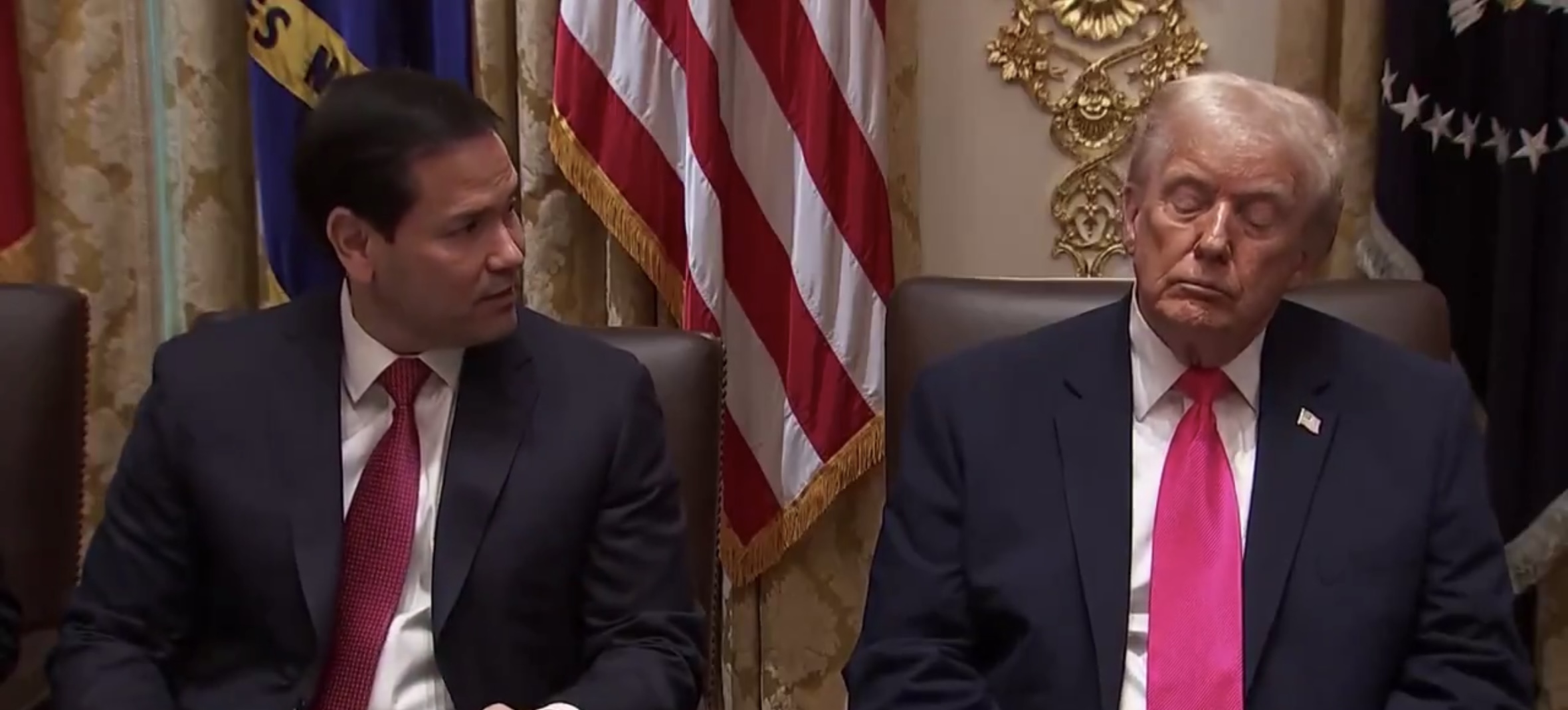 3 дек Дональд Трамп дрімав під час засідання Кабміну у Білому домі (UNN) 3 дек Трамп, імовірно, заснув на зустрічі зі своїми радниками – WP (Букви) 2 дек Трамп заснув під час засідання уряду: що сталося у Білому домі (COMMENTS.UA) 2 дек Трамп, схоже, задрімав під час засідання уряду США в Білому домі — відео (NV) + 1 похожая 3 дек Рубио "убаюкивает" босса: Трамп едва не заснул на заседании своего правительства (24 канал)