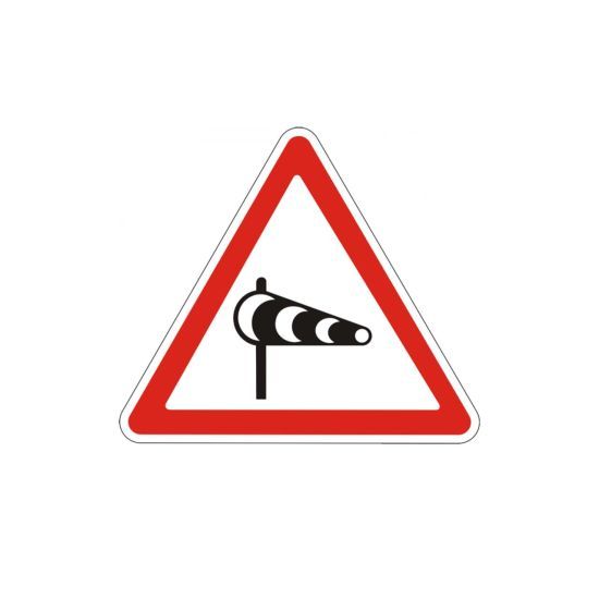 Знак "Боковий вітер" попереджає водіїв про небезпечну ділянку дороги, де можливі сильні пориви вітру, які можуть вплинути на керованість автомобіля.