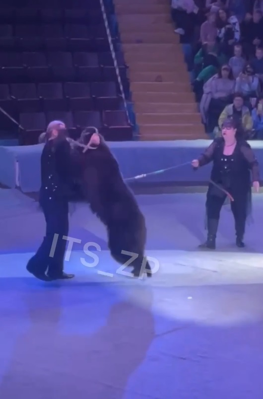 В цирке Запорожья во время представления медведь напал на дрессировщика