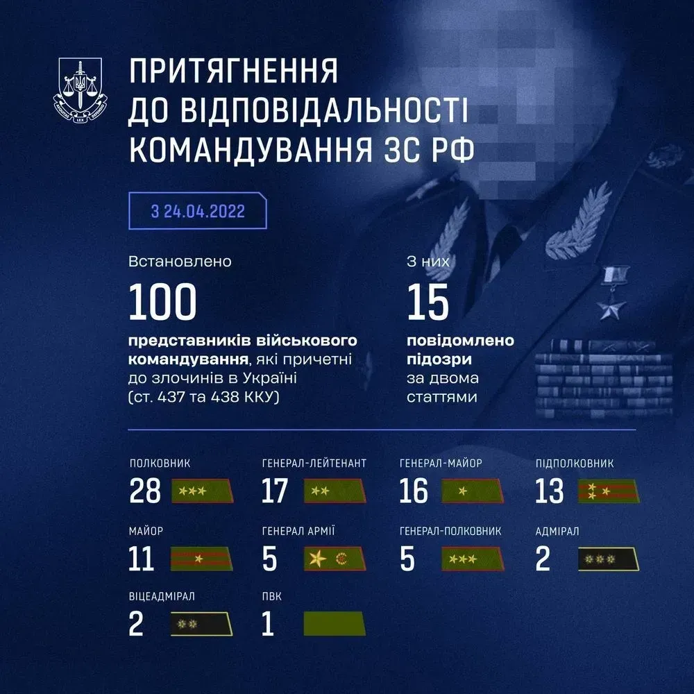 Сотня російських вищих офіцерів заочно отримали підозри за вчинені воєнні злочини - Офіс Генпрокурора