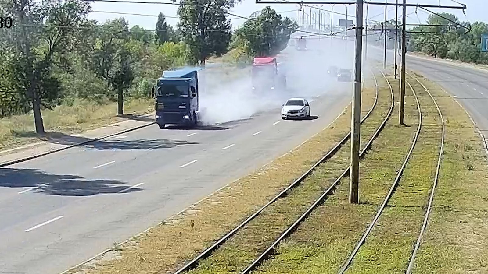 В Днепре на Донецком шоссе во время движения задымилась фура DAF: видео с камер