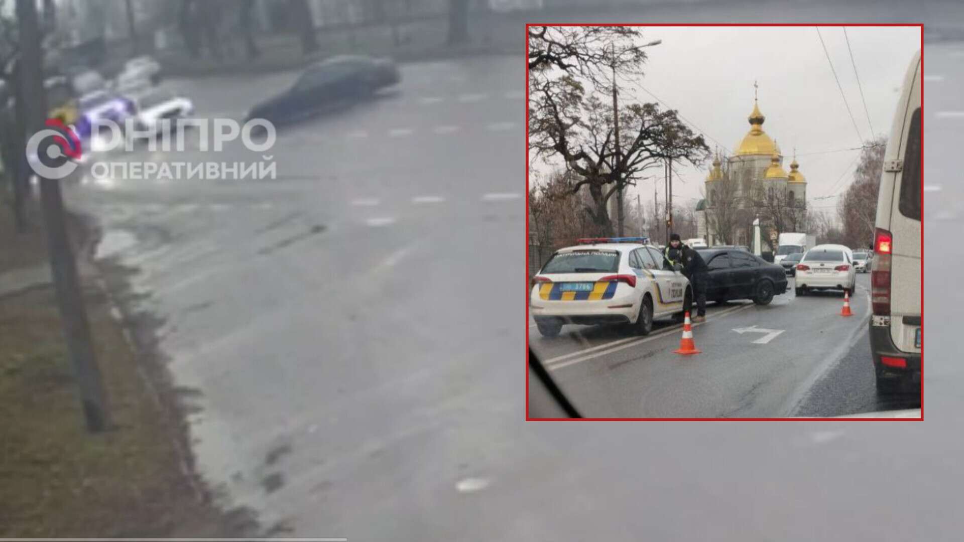В Днепре Mercedes занесло на дороге и он протаранил Subaru: видео момента ДТП