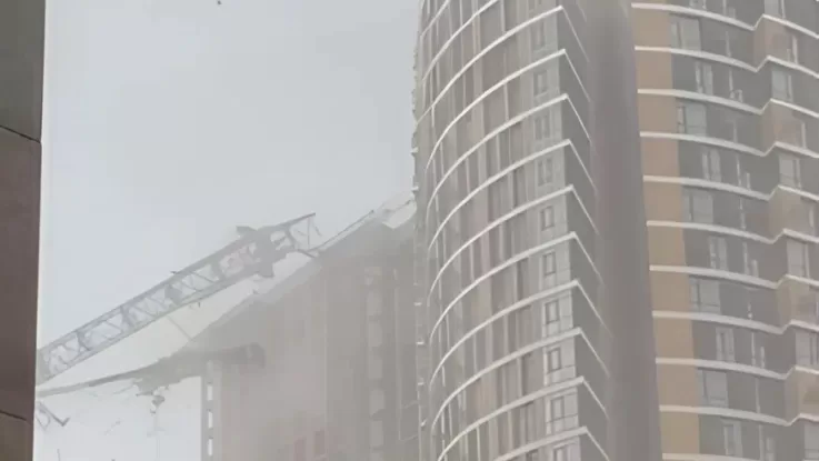 В Киеве во время непогоды упал строительный кран (видео)