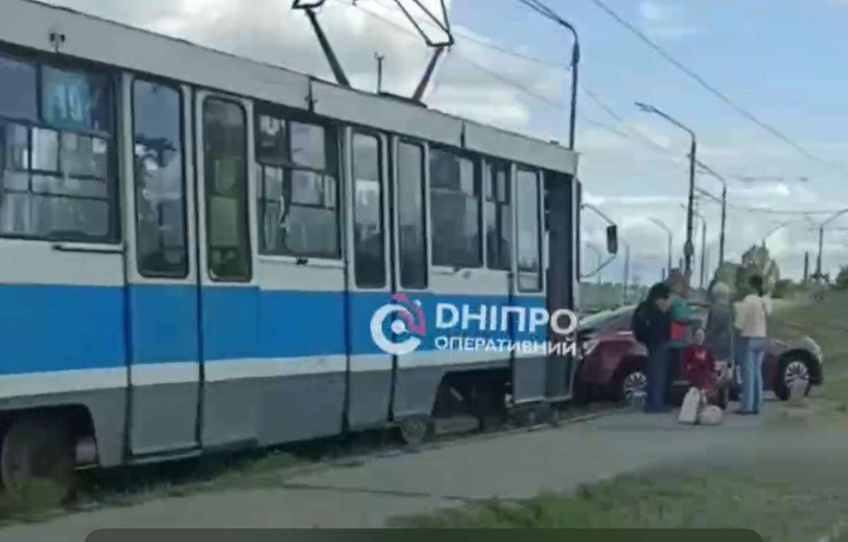 В Днепре неуправляемый автомобиль врезался в трамвай на Кайдакском мосту