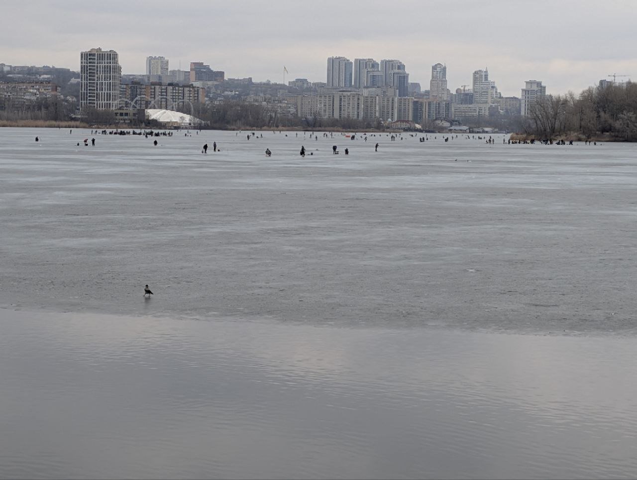 В Днепре отчаянные рыбаки выходят на лед, несмотря на оттепель