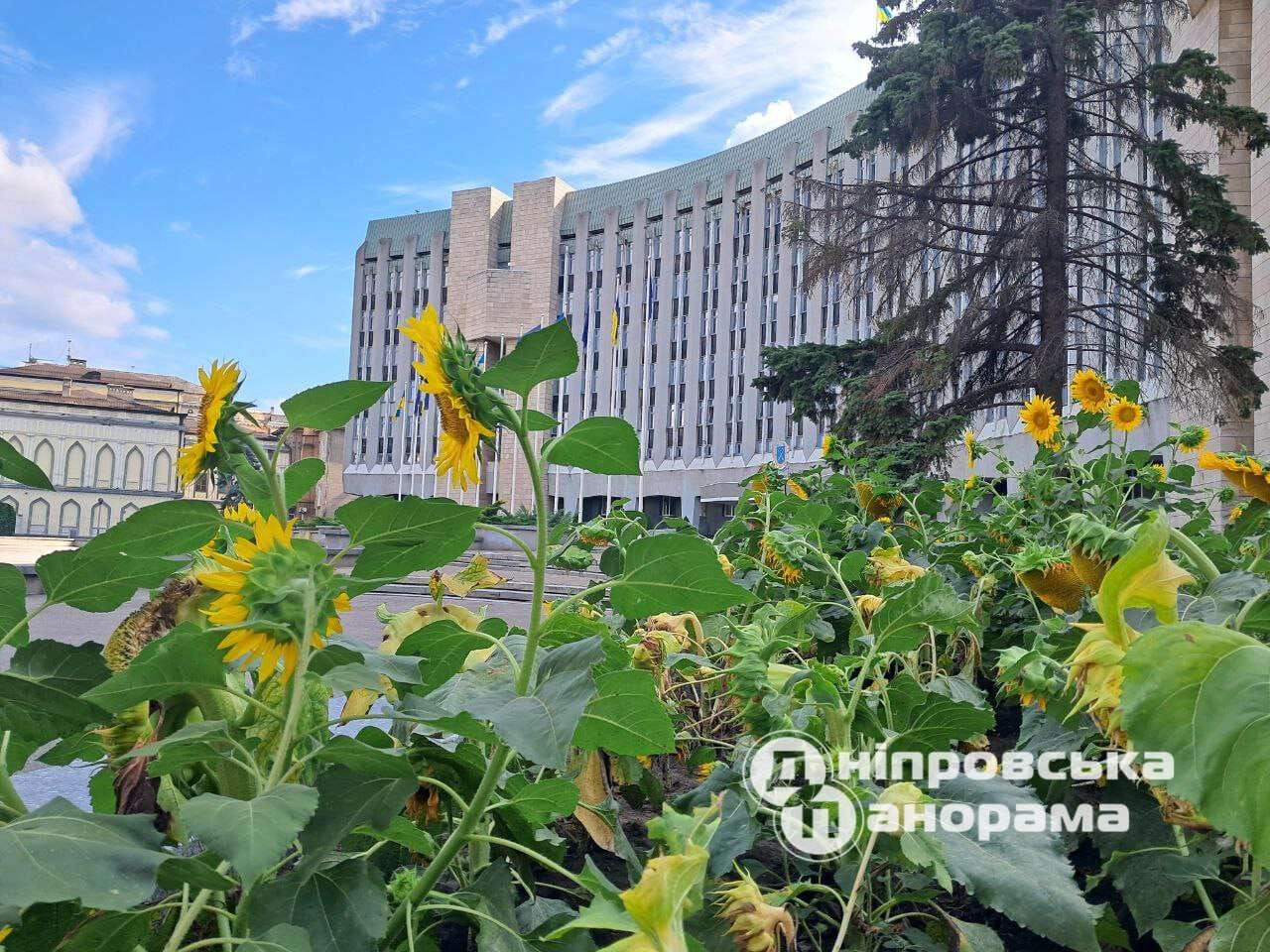 Соцветие подсолнуха стало символом исторического мужества украинских воинов. Символ скорби и памяти. В Днепре эти солнечные цветы выросли на клумбах