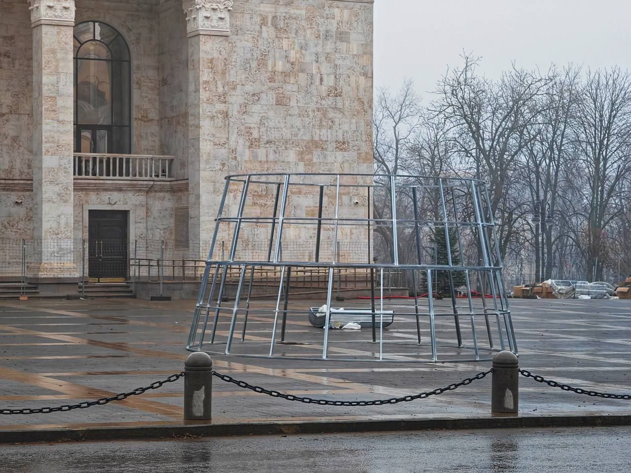 У Маріуполі окупанти встановлюють ялинку на місці загибелі сотень маріупольців / Фото: соціальні мережі У Маріуполі російські окупанти розпочали