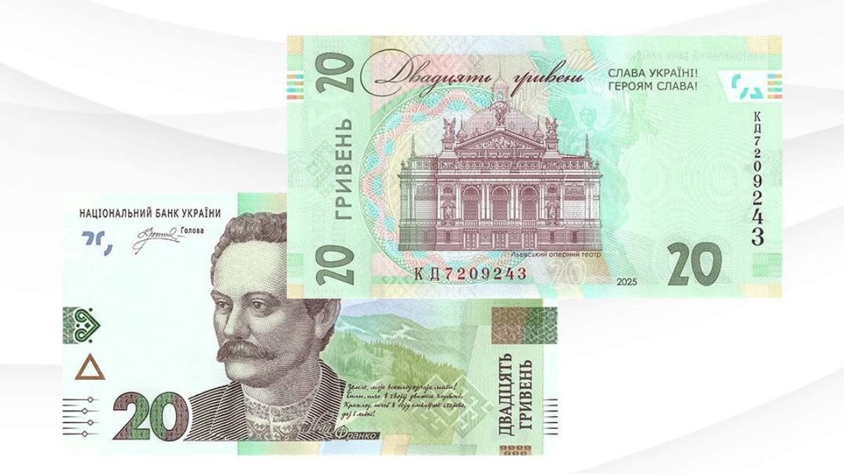 Национальный банк Украины в рамках планового выпуска с 21 августа 2025 вводит в обращение модифицированные банкноты номиналом 20 гривен. В правой