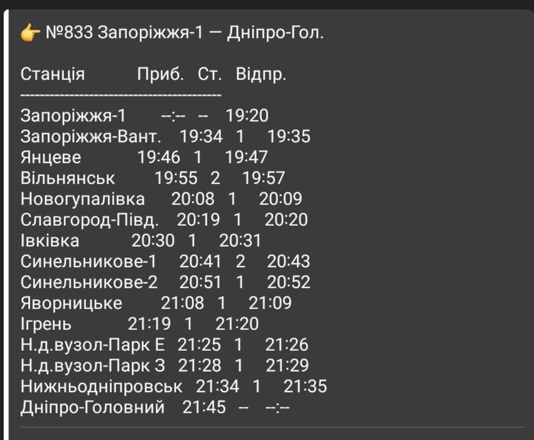 С 7 апреля 2026 между Днепром и Запорожьем начал курсировать новый пригородный региональный поезд №834/833 сообщением Днепр-Главный — Запорожье-1.