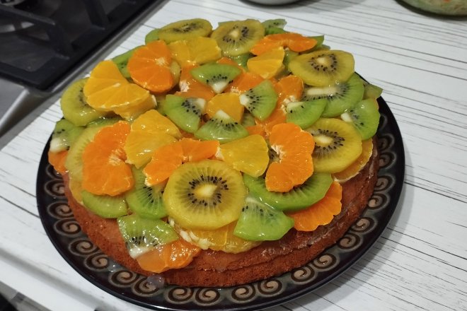 Веганський ванільний торт з фруктами — рецепт на олії та рослинному молоці