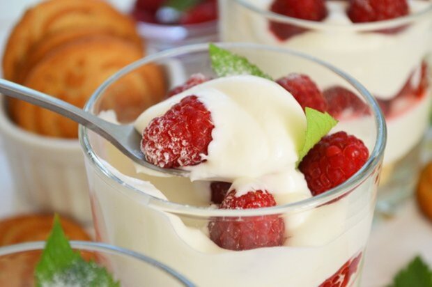 Нежный сливочный десерт с ромом и малиной - быстрый рецепт