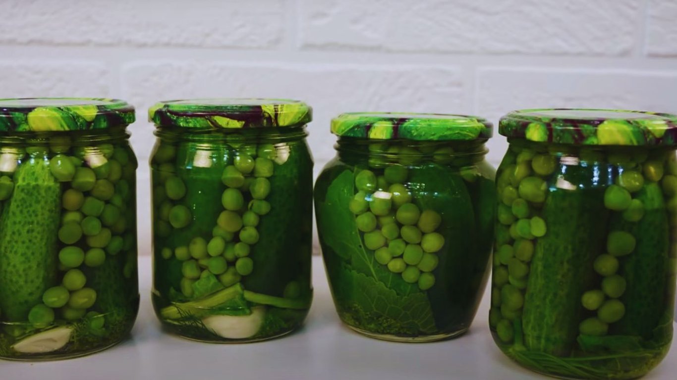 “Оливье в банке” на зиму: маринованные огурцы и горошек