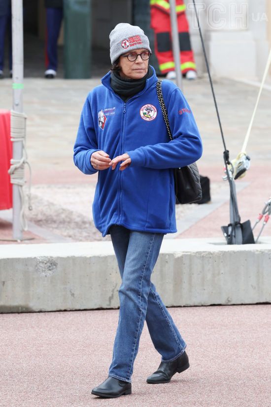 Младшая сестра князя Альбера II выбрала весьма скромный лук для появления на публике. 58-летняя Стефания была в синей флисовой кофте с эмблемой