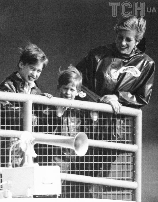 На снимке принцесса Уэльская запечатлена в темной куртке, похожей на дождевик, как и ее сыновья – старший принц Уильям и младший принц Гарри в