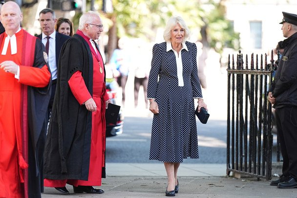 Її Величність приїхала, щоб оглянути ранні етапи будівництва різниці короля, яка зараз будується поряд з історичним абатством. Камілла одяглася в