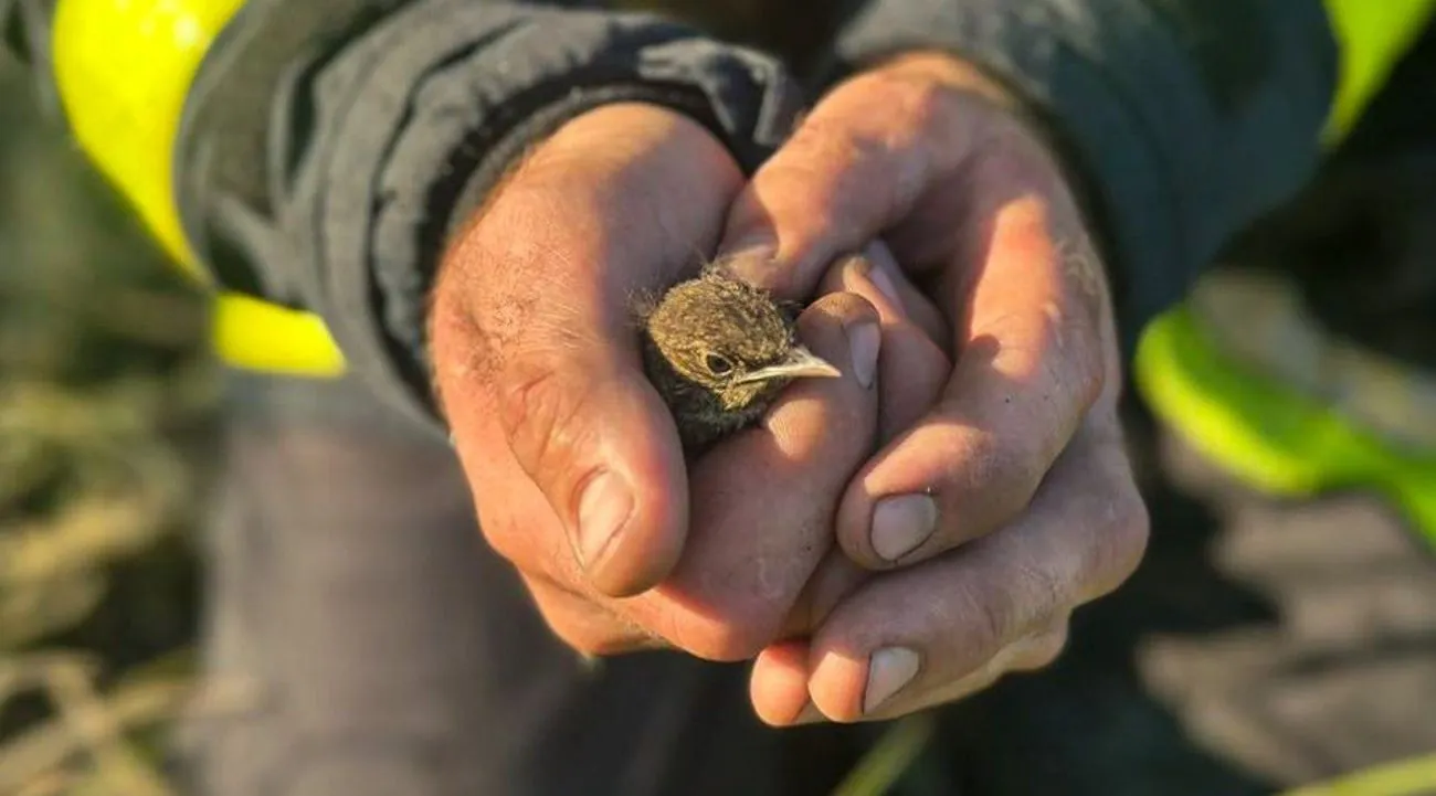 Під час гасіння пожежі сухостою у Харківської області вогнеборці знайшли у палаючих заростях пташеня, яке ледь не загинуло. Рятувальники обережно