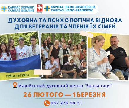 Ветеранів і ветеранок, а також членів їхніх сімей запрошують на чотириденну духовну та психологічну віднову, яка відбудеться наприкінці лютого в