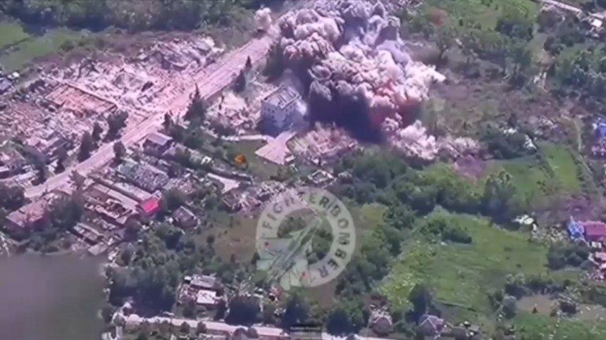 Российские захватчики распространили в сети, как утверждается, момент применения трёхтонной бомбы ФАБ-3000 М-54 с управляемым модулем планирования и