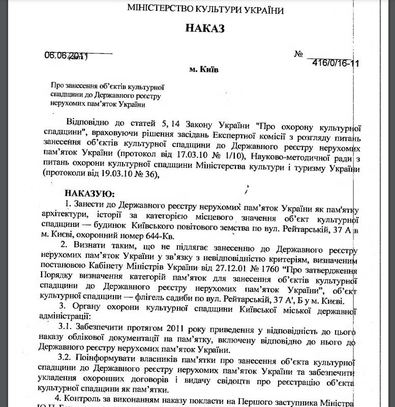 На Мінкульт подали до суду за наказ про споруду у Києві на Рейтарській, 37А: чому виникла суперечка