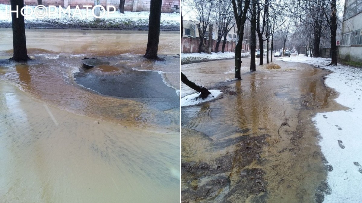 В Киеве 27 января снова прорвало трубопровод, водазатапливает улицу в Соломенском районе на Шутова. Очевидцы пишут, что вода бьет из-под земли.