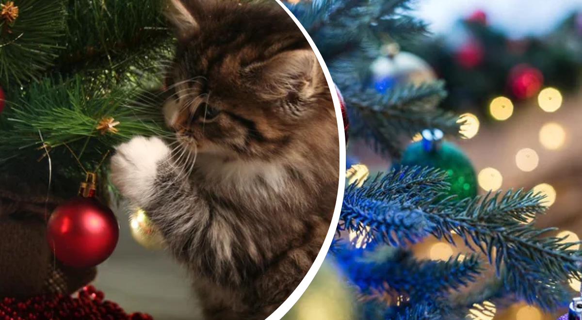 Как уберечь украшения на елке от домашнего любимца / Коллаж: Главред, фото ua.depositphotos.com Ключевое: Почему котам так нравятся елки Каким