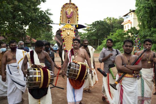 В Індії слон накинувся на людей під час фестивалю. П'ять прикрашених слонів стояли спокійно, як раптом один із них подався в натовп, схопив людину і