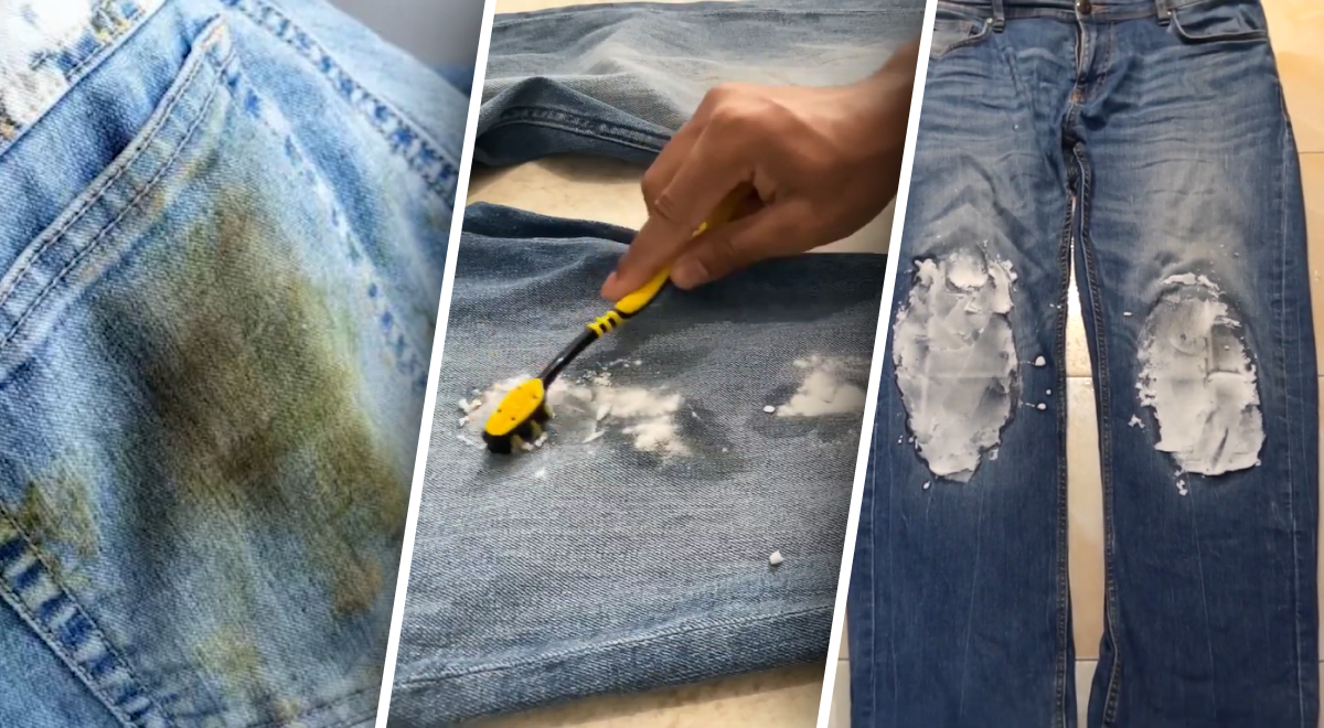 Чем отстирать траву с джинсов/ коллаж: Главред, фото: скрин из видео Вы узнаете: Как вывести пятно от травы на джинсах Какие средства в этом помогут