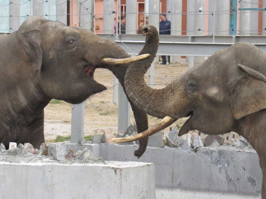 В Николаевском зоопарке показали встречу слонов после разлуки