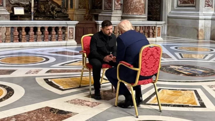 Президент Украины Владимир Зеленский и президент США Дональд Трамп провели короткую встречу в Риме перед церемонией похорон Папы Римского Франциска.