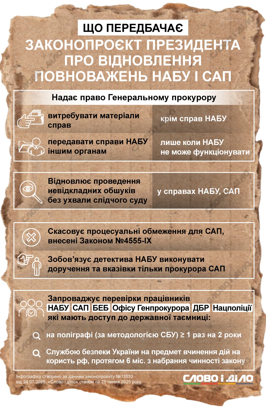 Повернення повноважень НАБУ та САП: в чому суть президентського законопроєкту — інфографіка