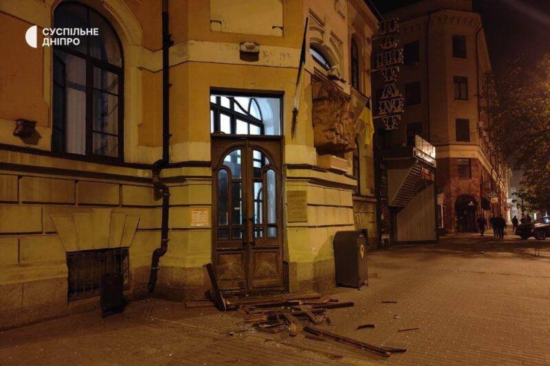 Из-за дроновой атаки на центр Днепра повреждены памятники истории и архитекторы местного значения. Среди изуродованных взрывной волной зданий