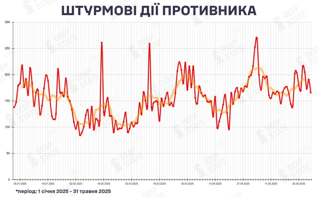 Россия в мае провела на 19% больше штурмов, чем в апреле - DeepState