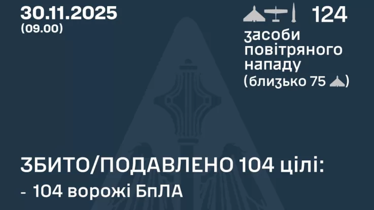 Вночі росіяни атакували україну 122 дронами та двома балістичними ракетами У ніч на 30 листопада (з 19:00 29 листопада) противник здійснив напад,