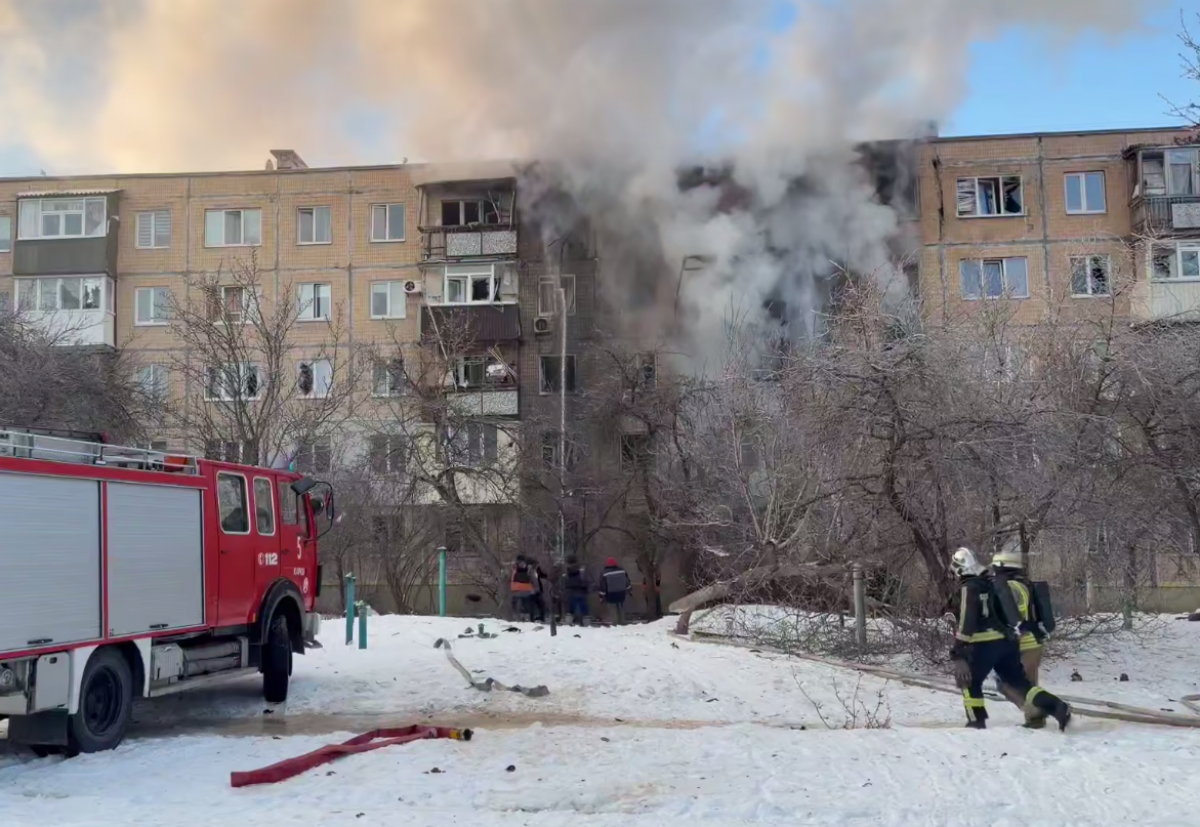 «Шахед» влучив у п'ятиповерховий будинок у Харкові: вигоріли верхні поверхи, постраждали п'ять людей