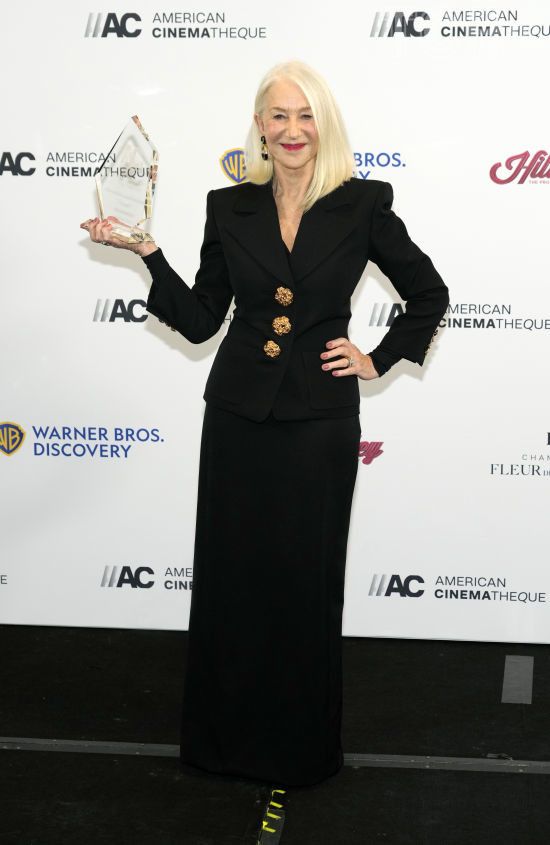 На церемонию в Беверли-Хиллз 78-летняя Миррен приехала в элегантном черном приталенном жакете с тремя золотыми пуговицами и длинной макси-юбке. Хелен