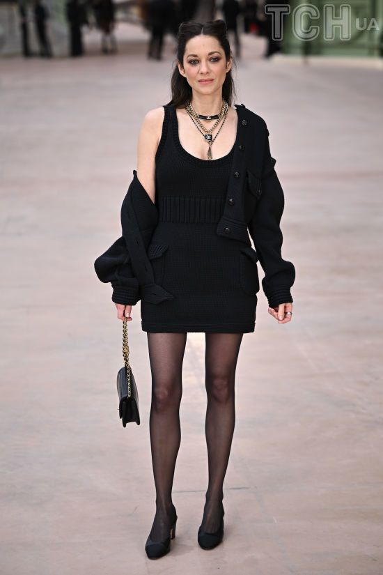 Позувала на Тижні моди у Парижі: Маріон Котіяр чорною мінісукнею підкреслила стрункі ноги