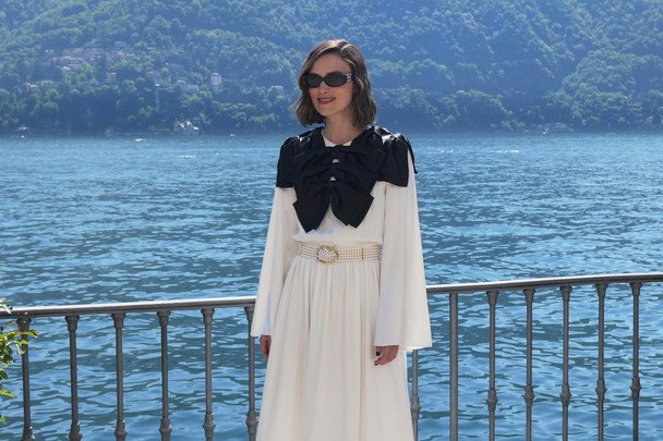 У білій сукні з чорними бантами: Кіра Найтлі відвідала показ Chanel в Італії